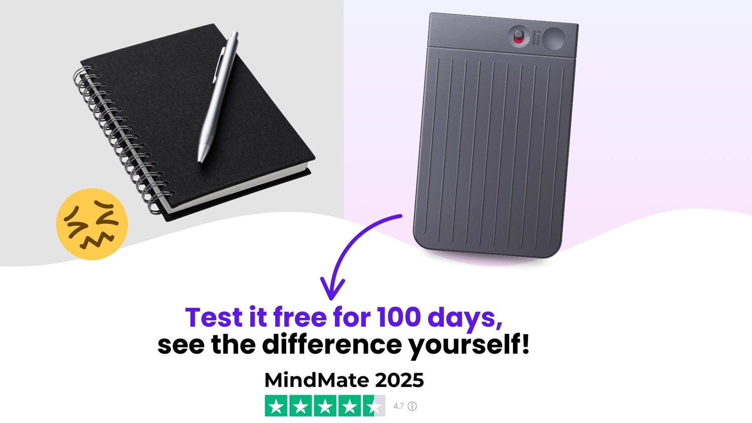 Experience how effortlessly productive you can be: Test MindMateAI™ for 100 days, risk-free. Not satisfied? Get your money back—guaranteed. Discover how MindMateAI™ can transform your everyday life.